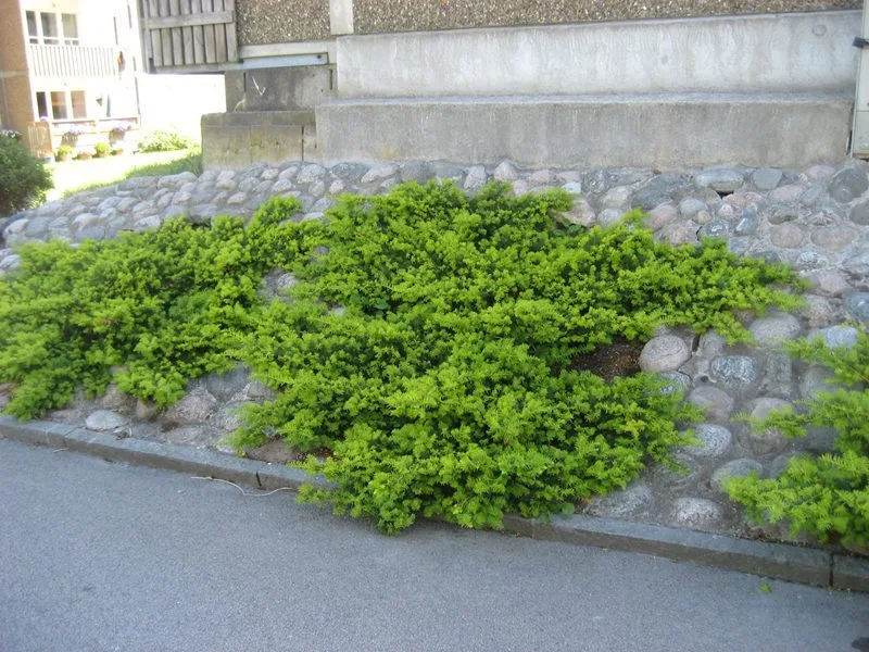 Låg, liten och tät marktäckande barrväxt som får ett krypande utseende med mörkt gröna, vackra barr. Används främst som marktäckare i parkmiljöer, trädgårdar och bodstadsgårdar. Kan även användas i vissa gatumiljöer då den är tuff och klarar utsatta miljöer. Får väldigt lite frukt.
