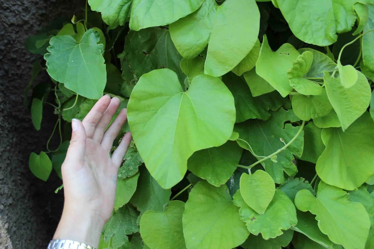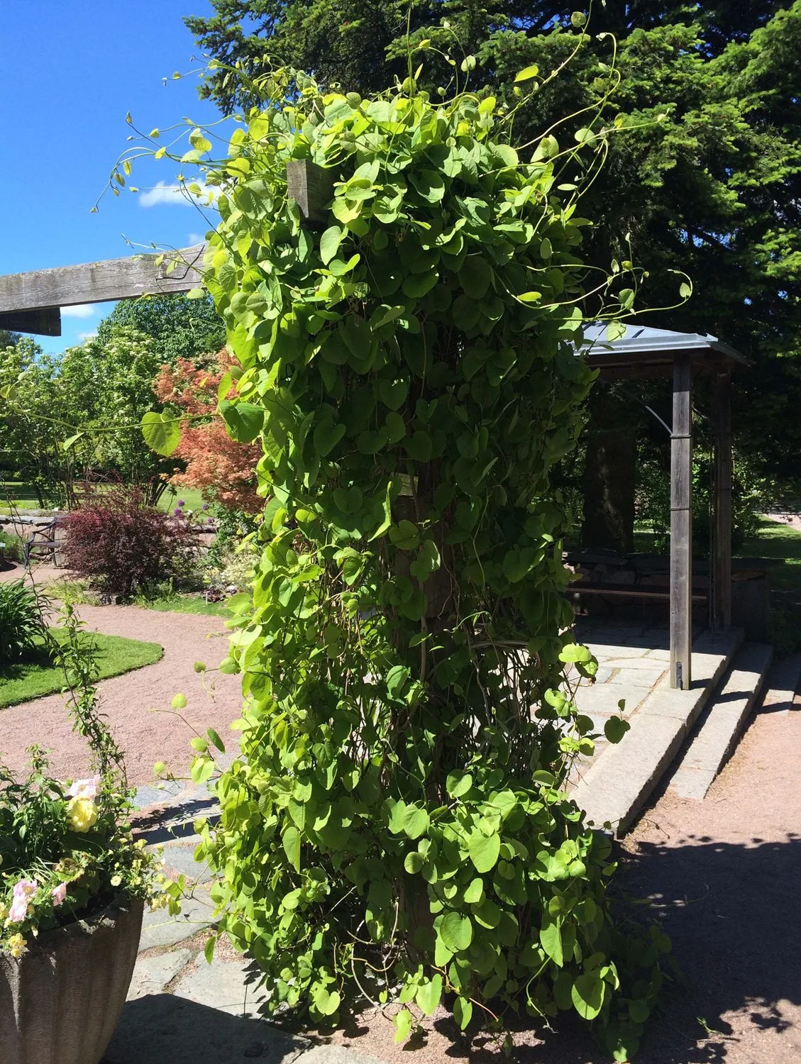 Storvuxen klätterväxt som får stora, friskt gröna, mycket vackra blad. Snabbväxande art som trivs i något fuktiga och näringsrika jordar. Får små, annorlunda gulgröna blommor i mitten på sommaren. Klättar med hjälp av klängen och behöver därmed stöd at klättra på.