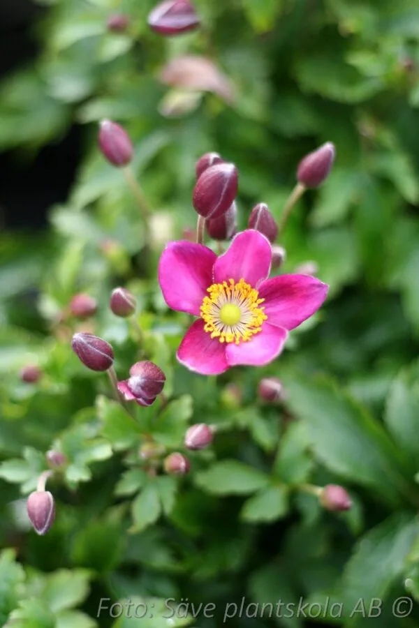 Mörkt rosa, enkla blommor med gul mitt. Kompakt växtsätt och fin som kantväxt.