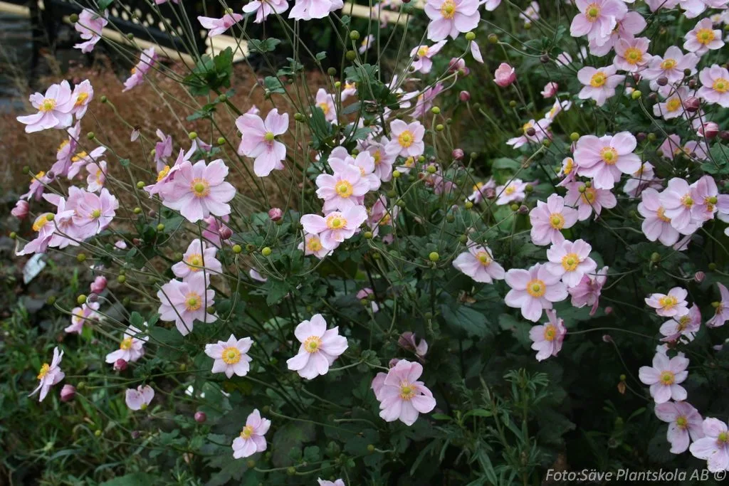 Ljusrosa, enkla blommor med gul mitt som har ett buskigt växtsätt. Fin som solitär.