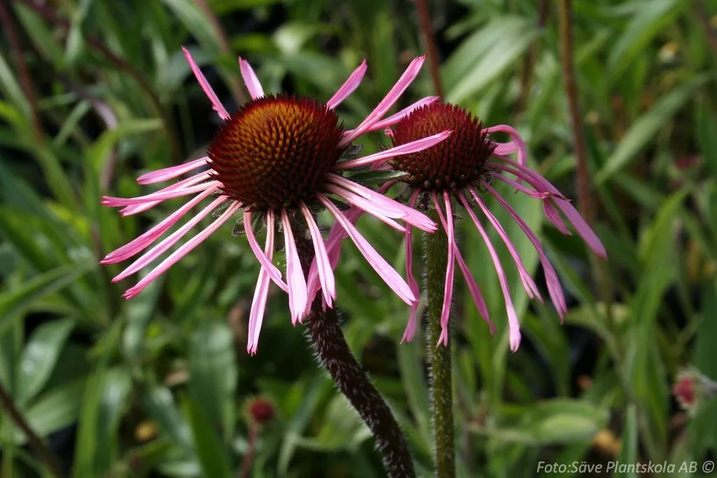 Rosa blommor med smala, hängande kronblad. Omtyckt av fjärilar och bin. Gammaldags läkeväxt.
