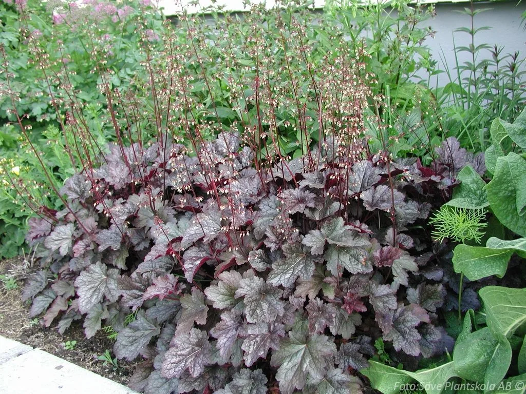 Purpurfärgat bladverk med silvrig marmorering. Passar bra som marktäckare. Undviks av sniglar. Odlas främst för bladverkets skull men får också små, gräddvita blommor på ca 50 cm höga stänglar.