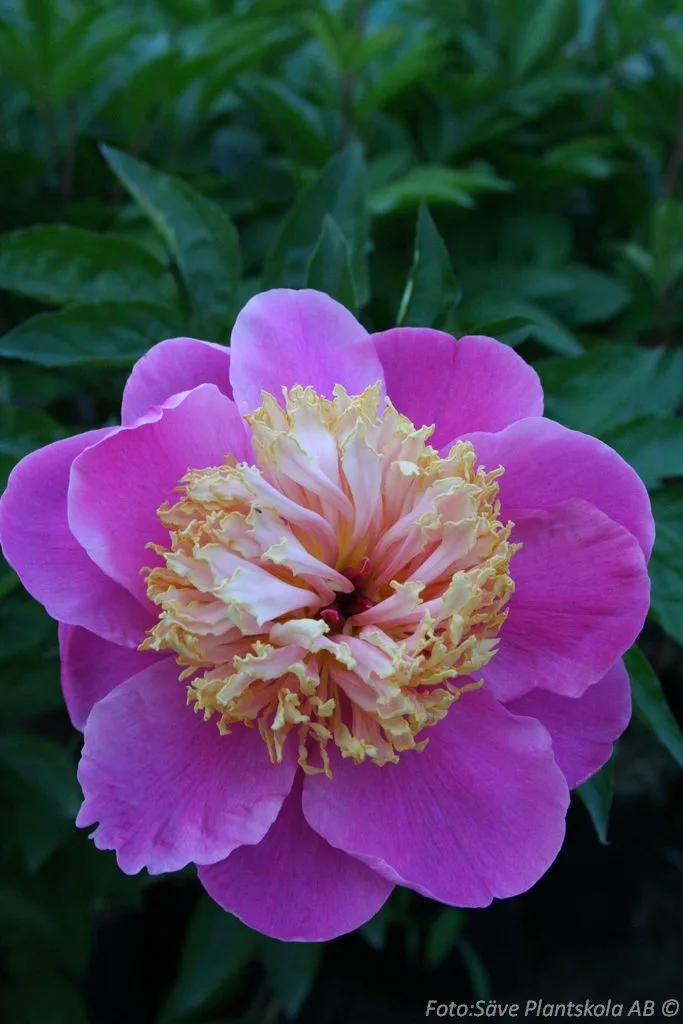 Väldoftande, rosaröda, halvfyllda blommor. Föredrar att stå länge på samma växtplats, då den tar tid på sig att etablera. Fin till snitt.