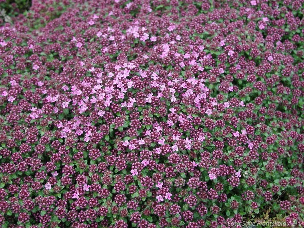 Aromatisk mattbildande perenn med lilarosa blommor. Omtyckt av fjärilar och bin. Passar bra i stenpartier.