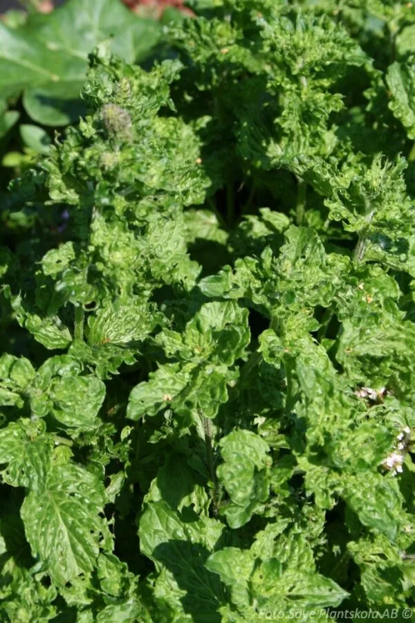 Fin kryddväxt med pepparmyntsdoftande, krusiga blad som ofta används i te. Sprider sig kraftigt och behöver därför begränsas.