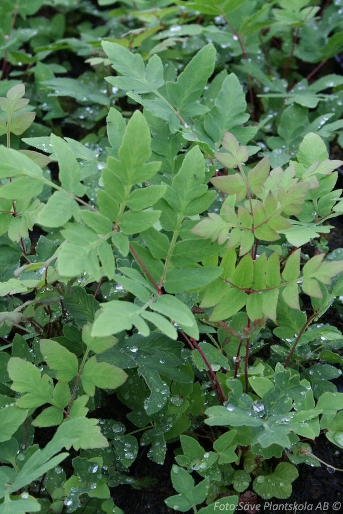 Dekorativ ormbunke med röda stjälkar och gröna blad som sedan får en gyllenröd höstfärg. Föredrar något sur jord.