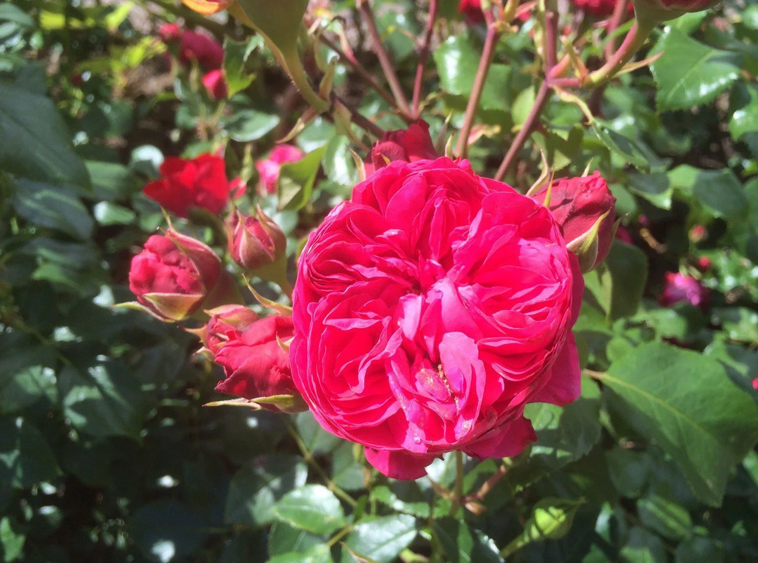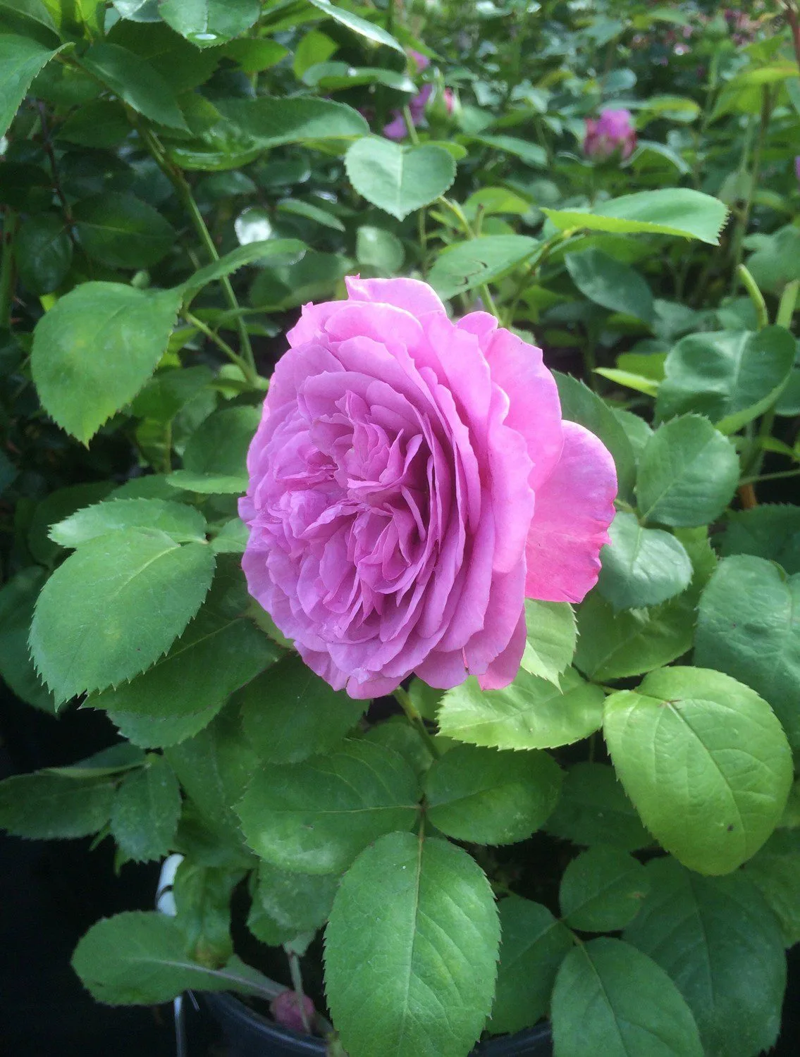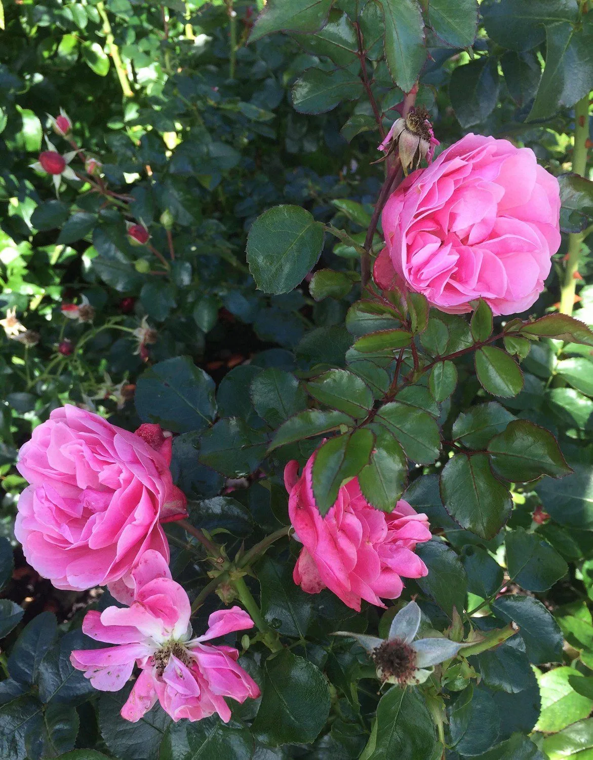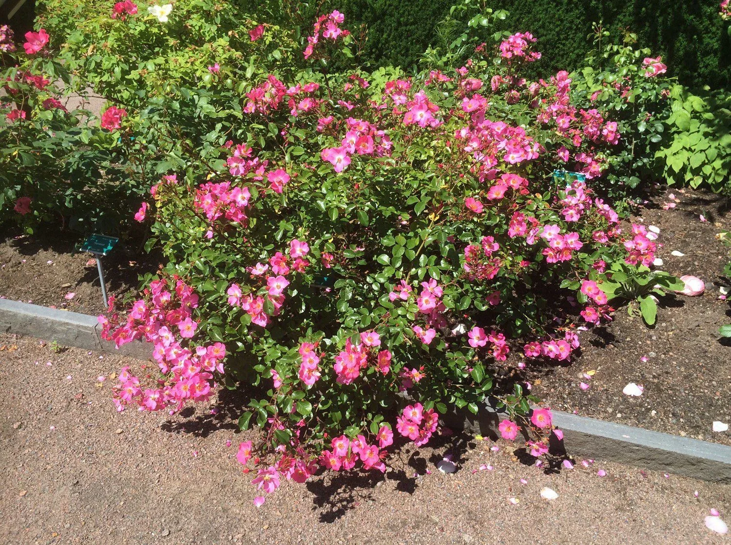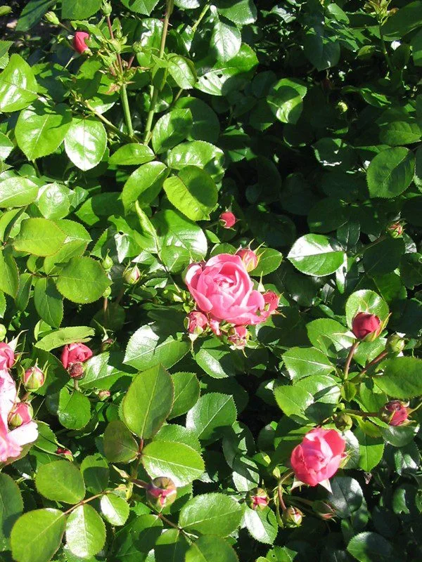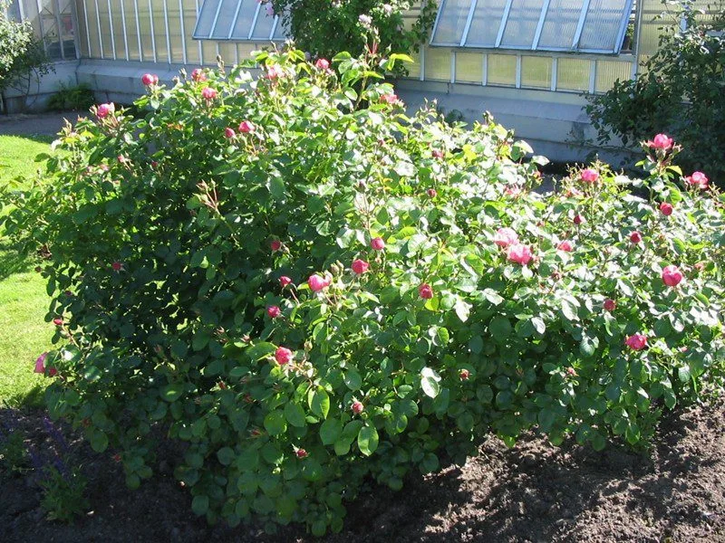 Kraftigväxande, tät och upprätt buskros som får medelstora, rosa, fyllda blommor med svag doft. Blommar från sommar till höst och får mörkt gröna, glänsande blad. Trivs i soliga lägen och näringsrika jordar.