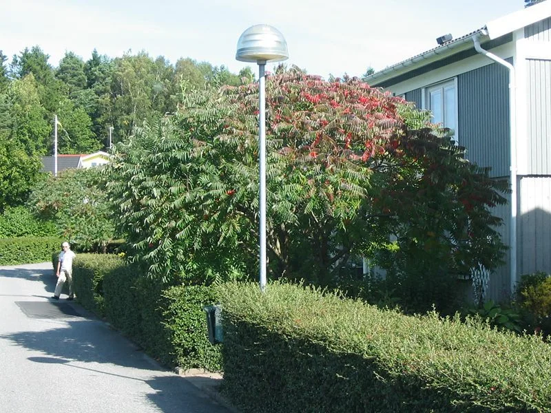 Dekorativt, flerstammigt träd/buske som används främst som solitär i trädgårds- eller parkmiljö. Får vackra, parbladiga blad med en mycket fin höstfärg i rött och orange. Skjuter mycket rotskott. Honplantorna får vackra, vindröda fröställningar som sitter kvar under vintern. Trivs i varma, soliga lägen.
