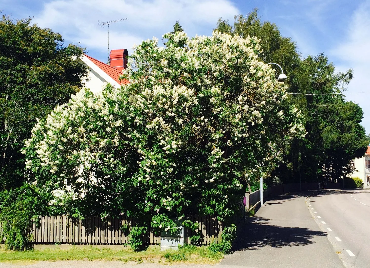 Upprättväxande, flerstammig buske eller mindre buskträd som används främst som solitär eller i grupp på bostadsgårdar och trädgårdar. Får vackra, vita enkla blommor som är väldoftande.